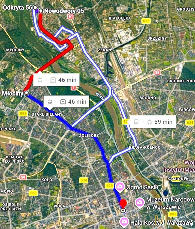 * dojazd tramwajem do stacji metra BIELANY (ok. 35 minut)